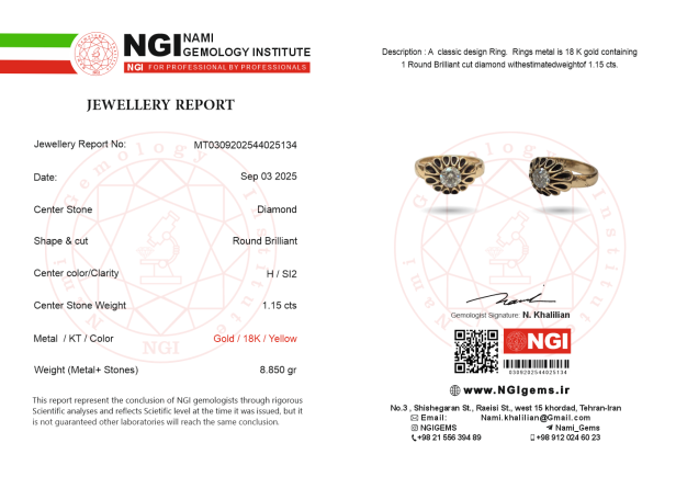 گواهی تایید شناسنامه گوهرها توسط موسسه گوهرشناسی نامی​​​​​​​