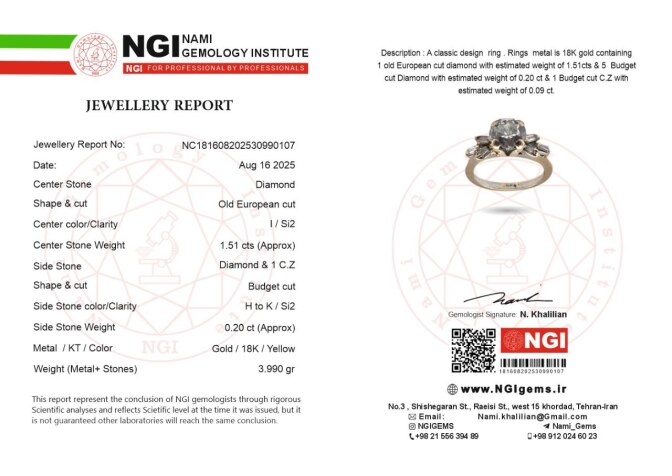 گواهی تایید شناسنامه گوهرها توسط موسسه گوهرشناسی نامی​​​​​​​
